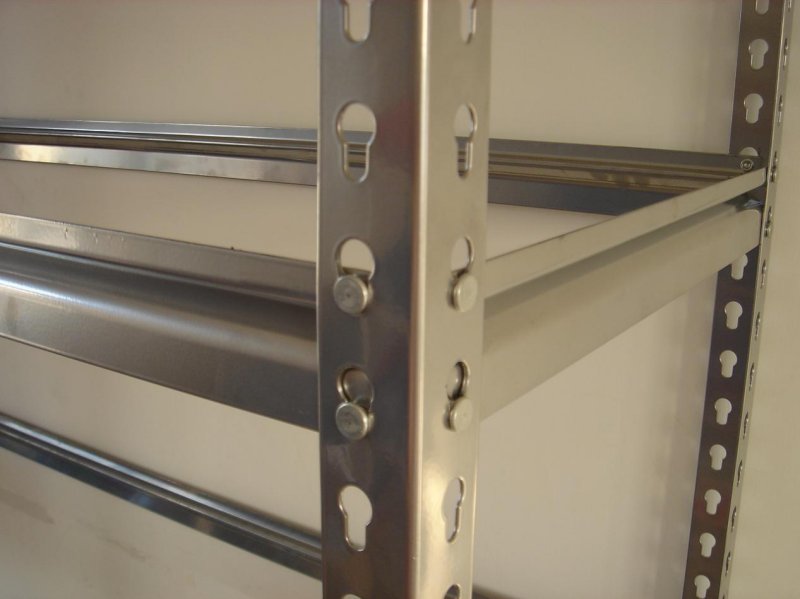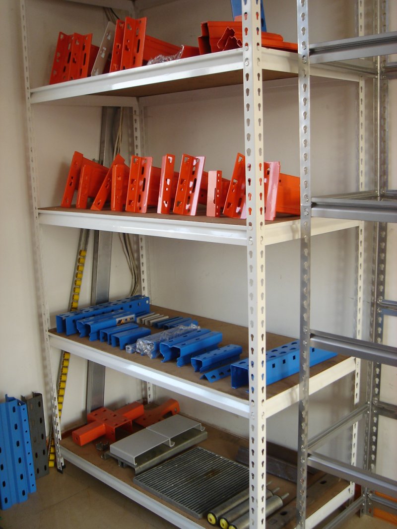 Light-duty Industrial Shelving 1、輕型貨架結構:插接組合式結構,標準組插件,不用一顆連接螺栓,拆裝方便快捷,超強型閉口鋼層板結構,層高每50mm任意可調(diào),每層更大載重150 - 250 kg. 2、貨架結構:該貨架采用橫梁與層板結合的結構形式,中型貨架可承載100-200kg,橫梁有多種規(guī)格的斷面,結構件均可自由裝拆,層高可調(diào)整,調(diào)距為50mm. 貨架構件采用鋼板軋制而成,強度及剛性符合機械工業(yè)標準。二氧化碳氣體保護焊,自動焊接。配件在噴油前經(jīng)過除油、除銹、酸洗、磷化四道工序處理。180度環(huán)氧樹脂電噴粉,一般為60-80微米。橫梁在承重后變型彎曲比例為長度的1:200,公差為10%,承重后安全系數(shù)為1.5倍