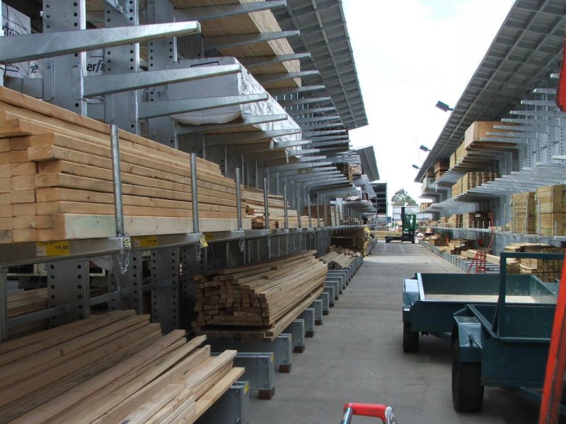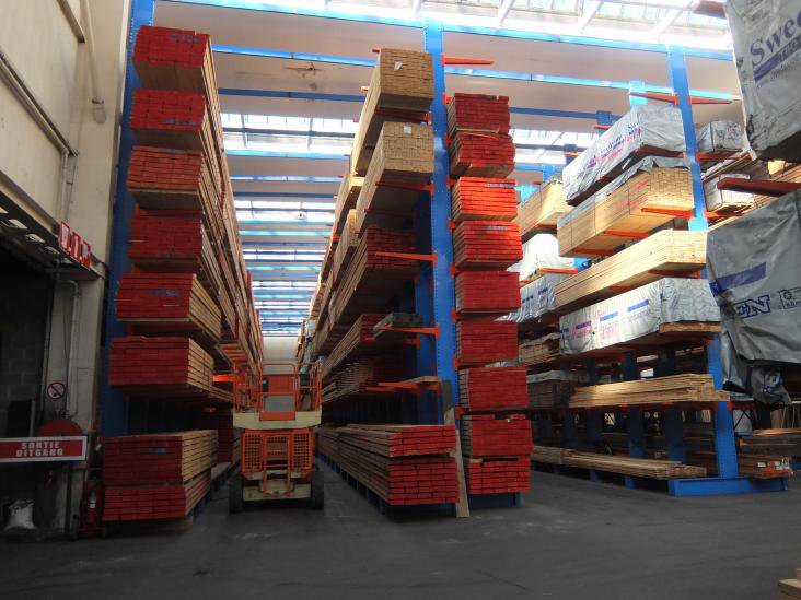放置木材和建材產(chǎn)品的懸臂貨架。 |