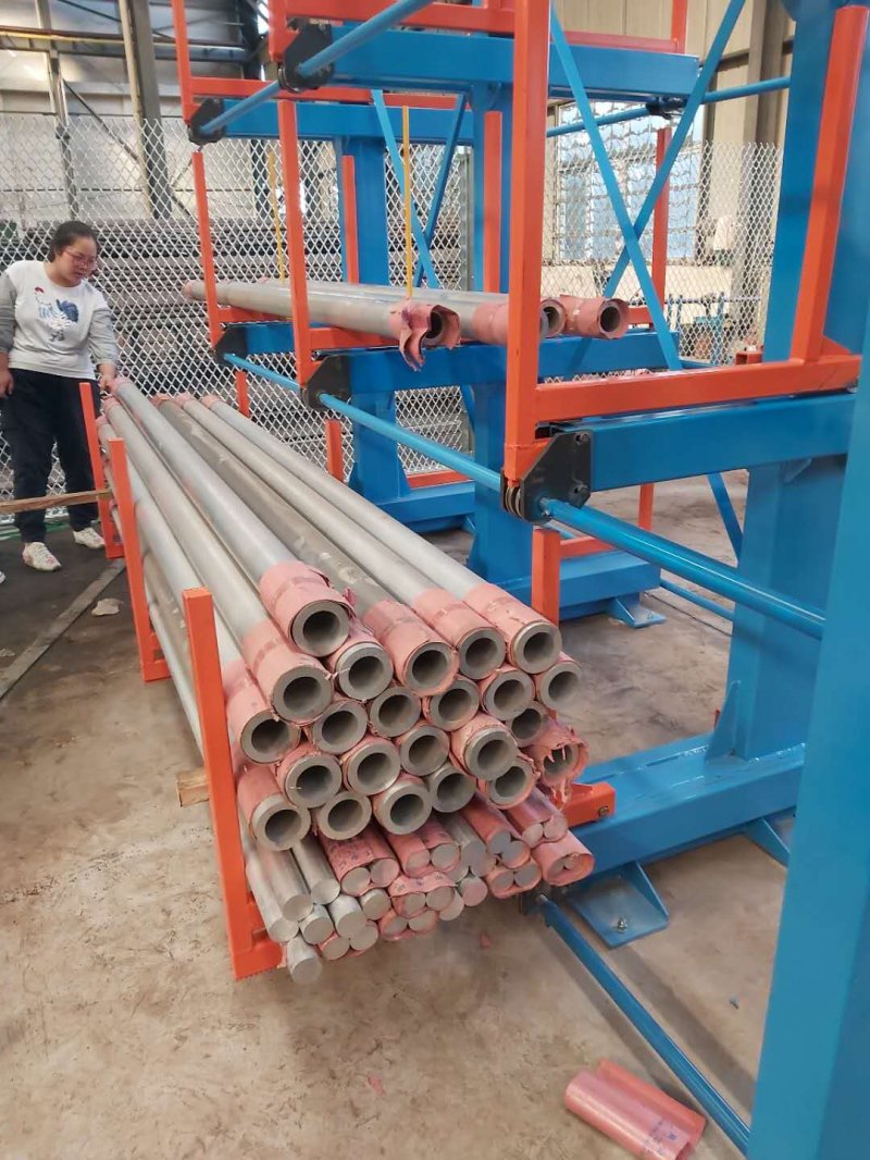 棒材存放的懸臂貨架的系統方案 伸縮懸臂式管材貨架是在懸臂式貨架的基礎上把固定懸臂升級為伸縮懸臂,這樣即使是6米、12米、17米的管材都可以使用行車直接存儲,伸縮懸臂每層的管材都能使用行車,行車也能到達想要存儲的管材面前,不用擔心中間和底層的管材擋著夠不到。 伸縮懸臂式貨架采用多層存放形式,以往不能碼放太高,容易倒塌,也擔心底層的管材腐蝕變形等情況的發生。現在使用伸縮式可以多層存放,管材也不接觸地面,不會腐蝕,每層獨立存取,上層的壓力不會帶給下層,也不用擔心變形。