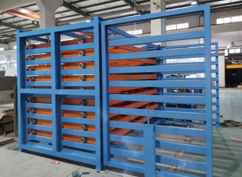 大型板材存放貨架帶有自動移動框的移動式貨架緊湊,方便定位金屬板位置,移動框架帶有滑輪和搖臂,選好目標板材之后移動懸臂即可創造空間獲取板材。移動框架固定在兩條平行軌道上,通過移動框架,人員方可進入空擋獲取金屬板是一種簡單安全的搬運方法。